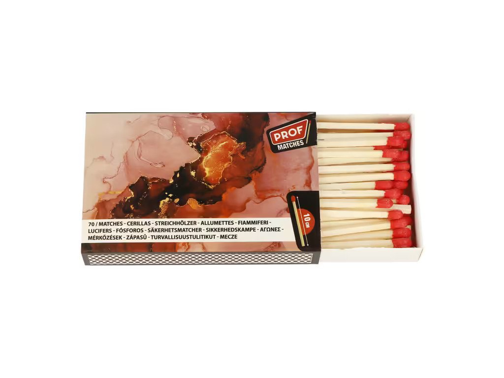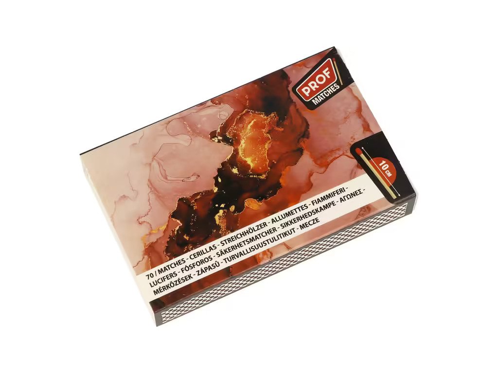 Dlouhé zápalky Prof. Zápalky jsou vhodné nejen pro zapalování krbů, grilů nebo svíček, ale také díky své délce pro zapálení doutníků. Krabička obsahuje 70 ks zápalek. Délka zápalky 10 cm. Cena uvedená za jedno balení - krabičku.Doplňkové parametry