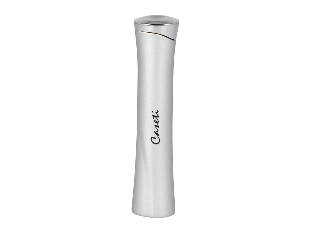 Dámský zapalovač Caseti Fashion Matte Silver. Elegantní kovový zapalovač ve stříbrné barvě s matným povrchem je na čelní straně zdobený logem. Po stisknutí horního tlačítka dojde k zapálení normálního plamene. Ve spodní části zapalovače najdeme plnící ventil plynu a ovládání intenzity plamene. Zapalovač je dodáván v dárkové krabičce.Rozměry zapalovače (Š x H x V): 19 x 17 x 85 mm