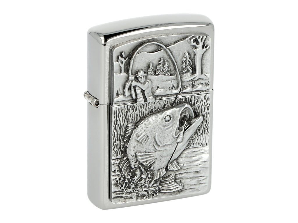 Benzínový zapalovač Zippo Bass Fishing 2000407. Kvalitní zapalovač Zippo s rybářským motivem v broušeném chromovém provedení je na přední straně zdobený 3D plaketou - zaseknutá ryba. Zapalovač je dodávaný v originální krabičce s logem. Zapalovače Zippo nejsou při dodání naplněné benzínem. Originální příslušenství benzín Zippo, kamínky, knoty a vata do zapalovače Zippo, zajistí správné fungování benzínové zapalovače. Na mechanické závady zapalovače poskytuje Zippo doživotní záruku. Tuto záruku můžete uplatnit přímo u nás. Zapalovače jsou vyrobené v USA, Original Zippo® Bradford.Distributor: Fortis-DB, spol. s r.o.