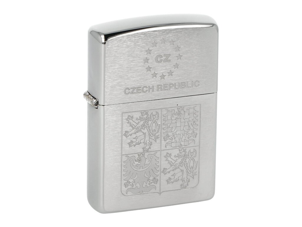 Benzínový zapalovač Zippo 21362 Český znak. Exklusivní zapalovač Zippo se státním znakem České republiky je broušeném chromovém provedení. Na přední straně najdeme mimo laserovaného státního znaku také nápis Czech Republic a zkratku CZ uprostřed hvězd Evropské unie. Zapalovač je dodávaný v originální krabičce s logem. Zapalovače Zippo nejsou při dodání naplněné benzínem. Originální příslušenství benzín Zippo, kamínky, knoty a vata do zapalovače Zippo, zajistí správné fungování benzínové zapalovače. Na mechanické závady zapalovače poskytuje Zippo doživotní záruku. Tuto záruku můžete uplatnit přímo u nás. Zapalovače jsou vyrobené v USA, Original Zippo® Bradford.Distributor: Fortis-DB, spol. s r.o.