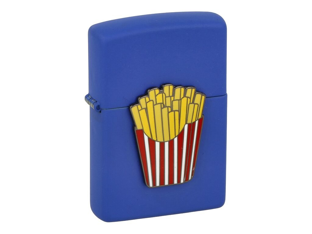Benzínový zapalovač Zippo Foodie Fries. Originální zapalovač Zippo s modrým matným povrchem je na čelní straně zdobený 3D plaketou s hranolky. Celokovové zpracování a větruodolnost zajistí spolehlivost za všech okolností. Zapalovač dodáváme v originální krabičce. Zapalovače Zippo nejsou při dodání naplněné benzínem. Originální příslušenství benzín Zippo, kamínky, knoty a vata do zapalovače Zippo, zajistí správné fungování benzínové zapalovače. Na mechanické závady zapalovače poskytuje Zippo doživotní záruku. Tuto záruku můžete uplatnit přímo u nás. Zapalovače jsou vyrobené v USA, Original Zippo® Bradford.Distributor: Fortis-DB, spol. s r.o.