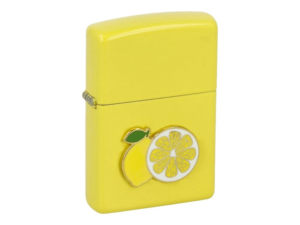 Benzínový zapalovač Zippo Foodie Lemon. Originální zapalovač Zippo se žlutým lesklým povrchem. Přední strana zapalovače je zdobená 3D plaketou s citronem. Celokovové zpracování a větruodolnost zajistí spolehlivost za všech okolností. Zapalovač dodáváme v originální krabičce. Zapalovače Zippo nejsou při dodání naplněné benzínem. Originální příslušenství benzín Zippo, kamínky, knoty a vata do zapalovače Zippo, zajistí správné fungování benzínové zapalovače. Na mechanické závady zapalovače poskytuje Zippo doživotní záruku. Tuto záruku můžete uplatnit přímo u nás. Zapalovače jsou vyrobené v USA, Original Zippo® Bradford.Distributor: Fortis-DB, spol. s r.o.