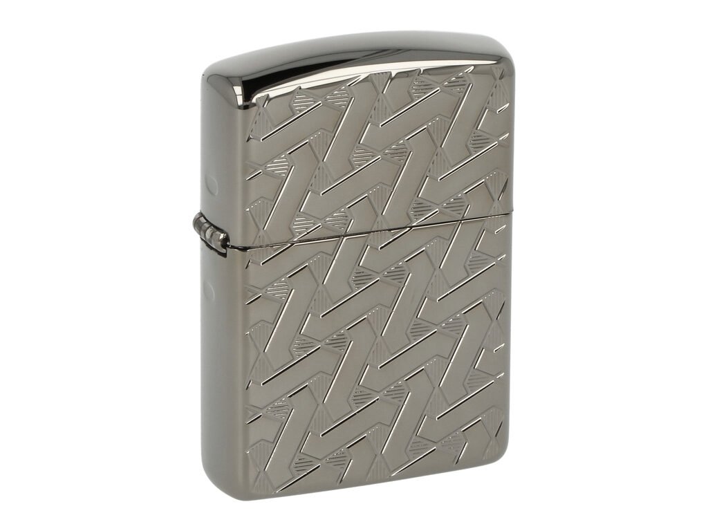 Benzínový zapalovač Zippo 49173 Geometric Weave. Kvalitní zapalovač řady Zippo Armor® v leštěné povrchové úpravě Black Ice. Čelní strana zapalovače je zdobená mechanicky rytým motivem. Schránka zapalovačů řady Armor® je vyráběná z 1,5x silnějšího kovu, než je běžné u klasických zapalovačů Zippo. Díky tomuto je možné použít speciální metody zdobení s variabilní hloubkou a tím vytvořit velmi výrazný reliéf. Zapalovač je dodávaný v originální krabičce s logem. Zapalovače Zippo nejsou při dodání naplněné benzínem. Originální příslušenství benzín Zippo, kamínky, knoty a vata do zapalovače Zippo, zajistí správné fungování benzínové zapalovače. Na mechanické závady zapalovače poskytuje Zippo doživotní záruku. Tuto záruku můžete uplatnit přímo u nás. Zapalovače jsou vyrobené v USA, Original Zippo® Bradford.Distributor: Fortis-DB, spol. s r.o.