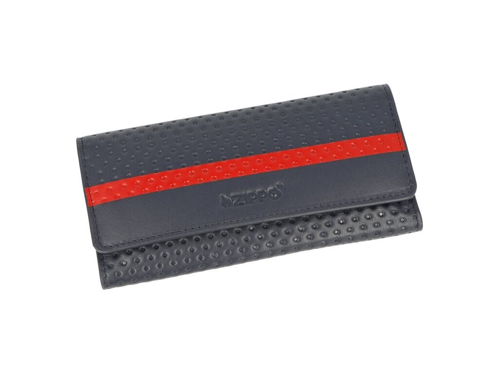 Kožené pouzdro na tabák Zippo v modré barvě. Originální pouzdro vyrobené z kvalitní kůže je zdobené logem Zippo a červeným pruhem na přední straně. Po rozevření najdeme jednu hlavní kapsu na tabák, další menší prostor na papírky a zipem uzavírací kapsu na filtry nebo jiné kuřácké potřeby. Pevné uzavření pouzdra zajišťují dva magnety. Pouzdro Zippo je dodávané v originální krabičce.Rozměry zavřeného pouzdra (Š x H x V): 160 x 27 x 80 mm